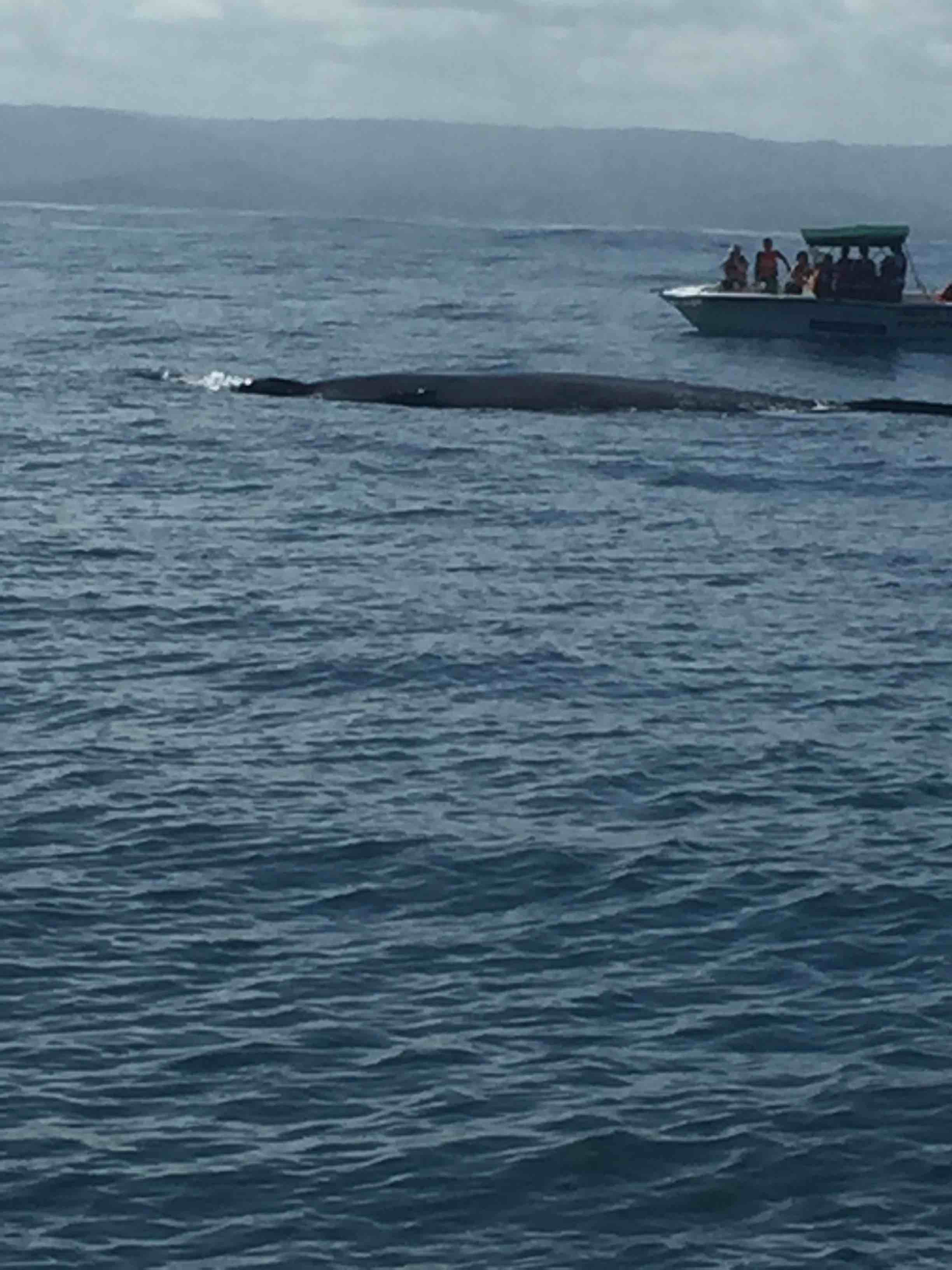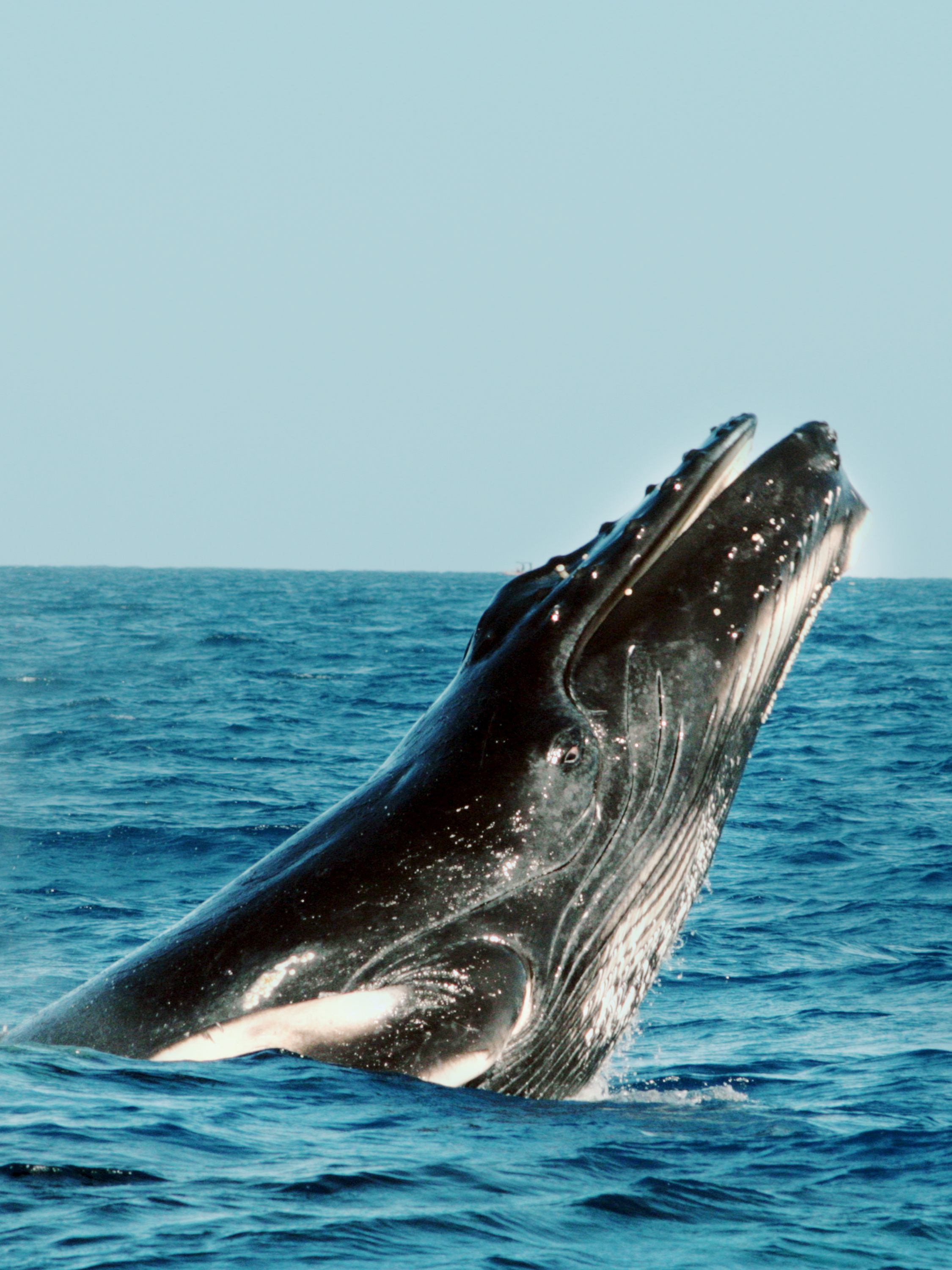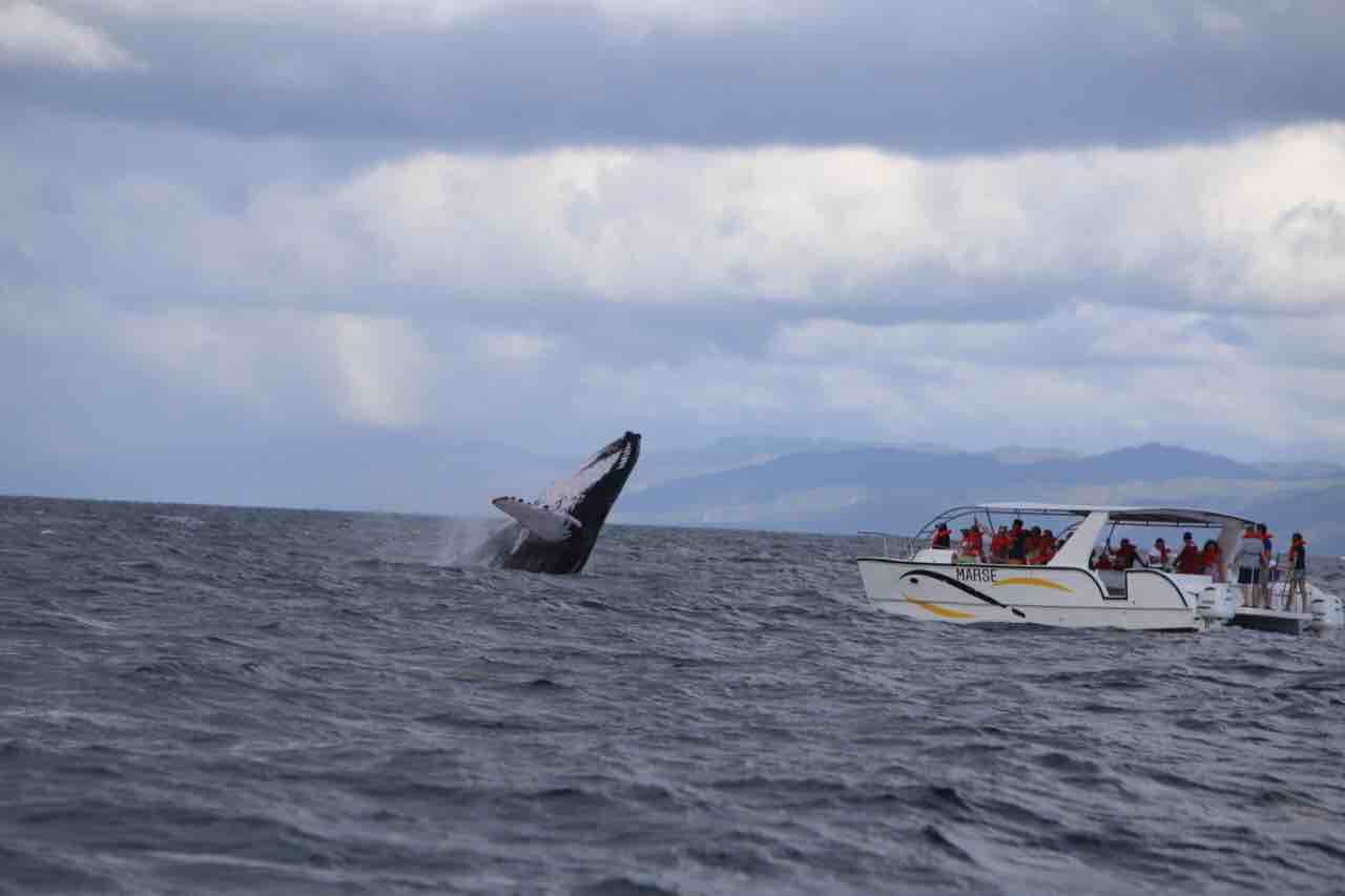 (Megaptera novaeangliae) Como nosotros, la jorobada es un mamífero: ella amamanta su bebé, respira aire, es de sangre caliente, y posee un alto y muy desarrollado modo de comunicación. Un adulto maduro puede alcanzar una longitud de 15 metros y un peso de 40 toneladas. La jorobada se distingue de otras ballenas por sus largas aletas pectorales, una serie de nódulos sensoriales y por la manera de jorobar su lomo al zambullirse. Es la especie de ballenas más activa, haciendo de su observación una actividad fascinante.